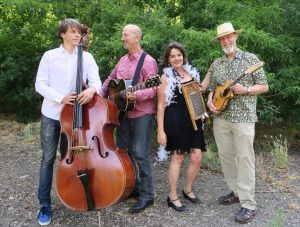 Quake City Jug Band started out as an authentic jug band in the 1990’s San Francisco Folk Club scene, but their sound and act has grown over the years to include snare drum, tap dancing, accordion, vocal harmonies, and feather boas. Their repertoire features 1920’s and 1930’s American blues, jazz and swing, a couple of songs in mediocre French, some very funny originals, and several covers of their favorite living jazz artists, Catherine Russell, Casey MacGill, and The Squirrel Nut Zippers.